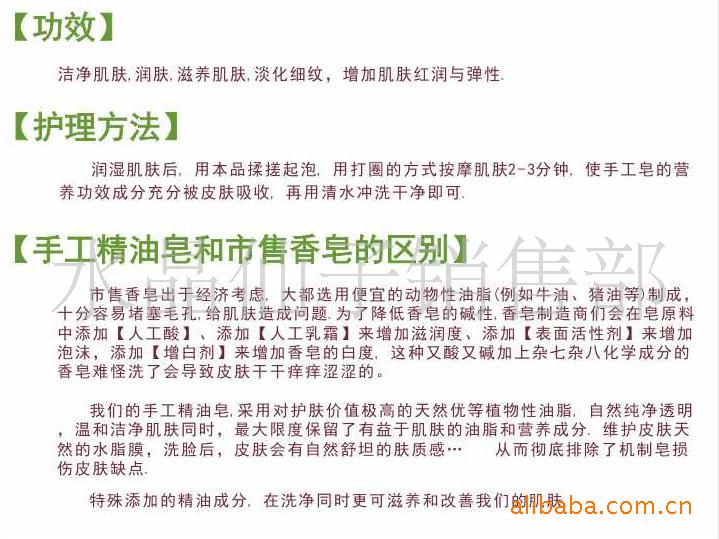 护理方法: 润湿肌肤后,用本品揉搓起泡,用打圈的方式按摩肌肤2-3分钟,使手工皂的营养功效成分充分被皮肤吸收,再用清水冲净即可
